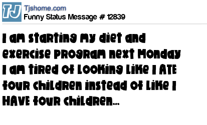 X I am starting my diet and exercise program next Monday – I am tired of looking like I ATE four children instead of like I HAVE four children…