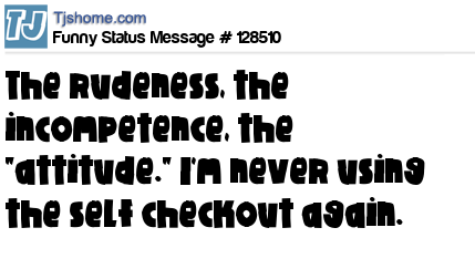 X  The rudeness, the incompetence, the "attitude." I'm never using the self checkout again.