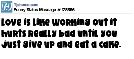 X Love is like working out it hurts really bad until you just give up and eat a cake.