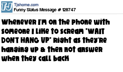 - # 46068 Whenever I'm on the phone with someone I like to scream WAIT DON'T HANG UP right as they're hanging up... then not answer when they call back.