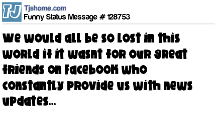 X We would all be so lost in this world if it wasnt for our great friends on Facebook who constantly provide us with news updates...