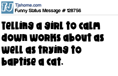 - # 125953 Telling your woman to calm down, works about as well as trying to baptize a cat.