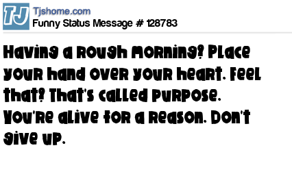X is Having a rough morning? Place your hand over your heart. Feel that? That's called purpose. You're alive for a reason. Don't give up.
