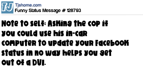 X Note to self: Asking the cop if you could use his in-car computer to update your Facebook status in no way helps you get out of a DUI.
