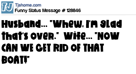 X Husband... "Whew, I'm glad that's over." Wife... "NOW CAN WE GET RID OF THAT BOAT!"