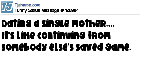 - # 111031 Dating a single mother is like continuing on from somebody else's saved game.