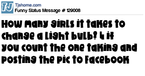 - # 118249 I don't know how many girls it takes to change a light-bulb but I guarantee you they'd post pictures of them doing it on Facebook.