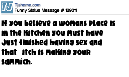 X If you believe a womans place is in the kitchen you must have just finished having sëx and that þìtçh is making your sammich.