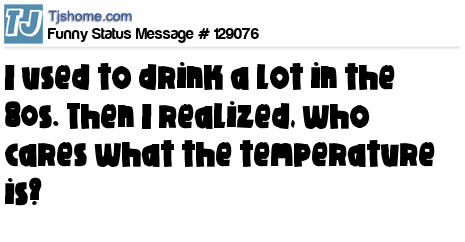 - # 197324 I used to drink a lot in the '80's. Then I realized, who cares what the temperature is?