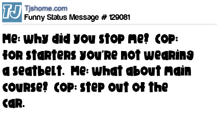 X says Me: why did you stop me? Cop: for starters you're not wearing a seatbelt. Me: what about main course? Cop: step out of the car.