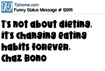 X says t's not about dieting, it's changing eating habits forever. — Chaz Bono