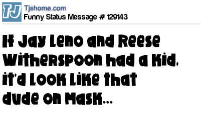X says if Jay Leno and Reese Witherspoon had a kid, it'd look like that dude on Mask...