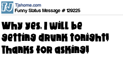 X is Why yes, I will be getting drunk tonight! Thanks for asking!
