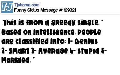 X This is from a greedy single, " Based on intelligence, people are classified into: 1- Genius 2- Smart 3- Average 4- stupid 5- Married. "