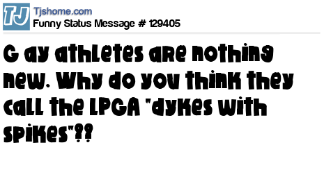 X says g ay athletes are nothing new. Why do you think they call the LPGA "dykes with spikes"??