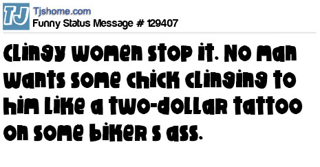 X says Clingy women stop it. No man wants some chick clinging to him like a two-dollar tattoo on some biker’s ass.