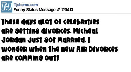 X These days alot of celebrities are getting divorces. Micheal Jordan just got married, I wonder when the new Air Divorces are comming out?