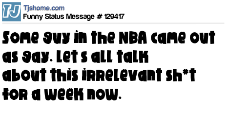 X says Some guy in the NBA came out as gay. Let’s all talk about this irrelevant sh*t for a week now.