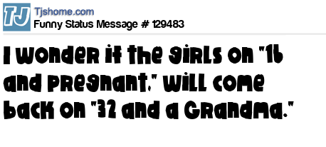 X I wonder if the girls on "16 and pregnant," will come back on "32 and a Grandma."