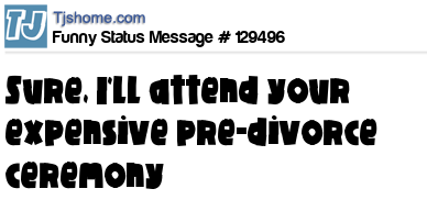 X Sure, I'll attend your expensive pre-divorce ceremony