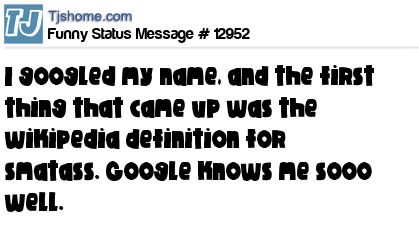 X I googled my name, and the first thing that came up was the wikipedia definition for smatass. Google knows me sooo well.