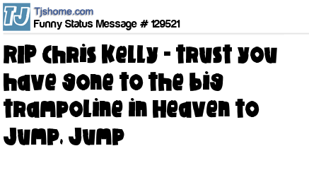 X is RIP Chris Kelly - trust you have gone to the big trampoline in Heaven to Jump, Jump