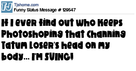 X If I ever find out who keeps Photoshoping that Channing Tatum loser's head on my body... I'M SUING!