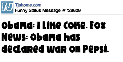 X is Obama: I like Coke. Fox News: Obama has declared war on Pepsi.