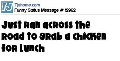 - # 157104 I just seen a chicken cross the road. I'm not even going to question it. It's not like the chicken is going to answer me back. . .