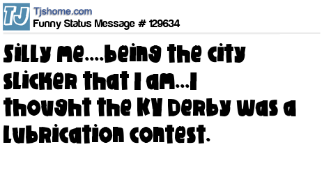 X Silly me....being the city slicker that I am...I thought the KY Derby was a lubrication contest.