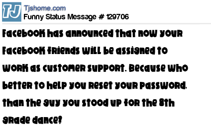 X says Facebook has announced that now your Facebook friends will be assigned to work as customer support. Because who better to help you reset your password, than the guy you stood up for the 8th grade dance?