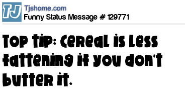 X says Top tip: Cereal is less fattening if you don't butter it.