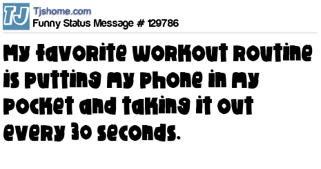 X says My favorite workout routine is putting my phone in my pocket and taking it out every 30 seconds.