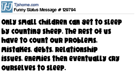 X says Only small children can get to sleep by counting sheep. The rest of us have to count our problems, mistakes, debts, relationship issues, enemies then eventually cry ourselves to sleep.