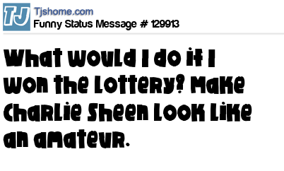 X What would I do if I won the lottery? Make Charlie Sheen look like an amateur.