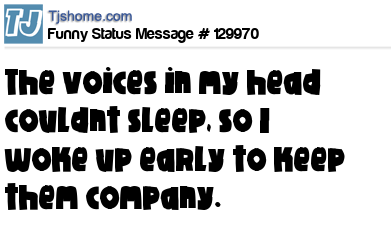 - # 184121 I'm suffering from Insania. Its sort of like Insomnia, only its the voices in my head that cant sleep.