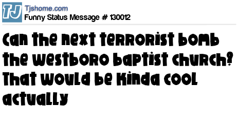 X is Can the next terrorist bomb the westboro baptist church? That would be kinda cool actually