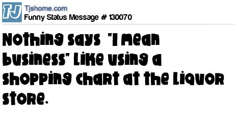 - # 106780 Nothing says 'I mean business' like using a grocery cart at the liquor store.