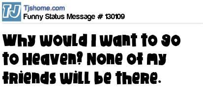 X says Why would I want to go to Heaven? None of my friends will be there.