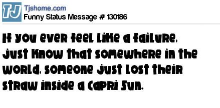 X says If you ever feel like a failure, just know that somewhere in the world, someone just lost their straw inside a Capri Sun.