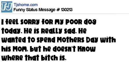 X is I feel sorry for my poor dog today. He is really sad. He wanted to spend Mothers Day with his Mom, but he doesn't know where that bitch is.