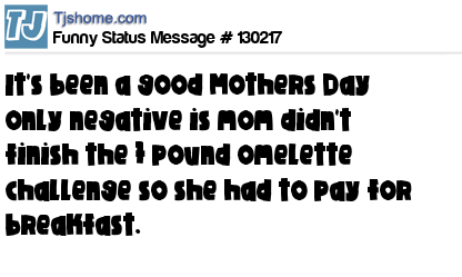 X says It's been a good Mothers Day only negative is mom didn't finish the 7 pound omelette challenge so she had to pay for breakfast.