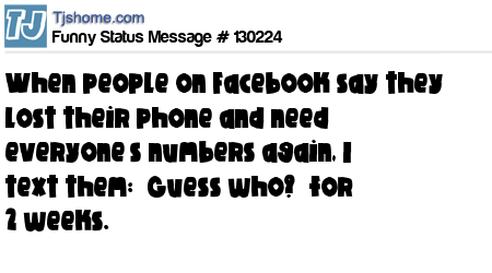 X says When people on Facebook say they lost their phone and need everyone’s numbers again, I text them: “Guess who?” for 2 weeks.