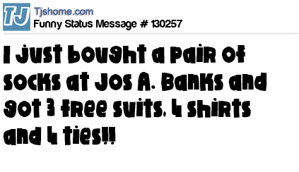 X says I just bought a pair of socks at Jos A. Banks and got 3 free suits, 4 shirts and 4 ties!!