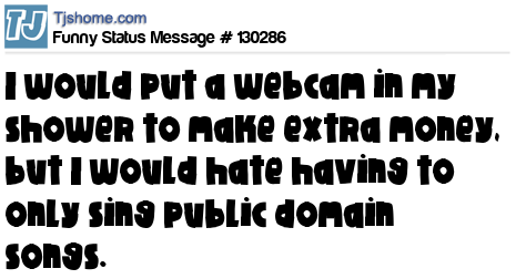 X says I would put a webcam in my shower to make extra money, but I would hate having to only sing public domain songs.