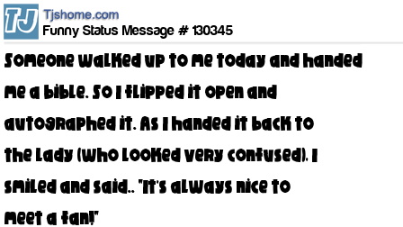 - # 167030 When someone hands me a Bible, I flip it open and autograph it. Then I hand it back (as they look very confused), I smile and say.. "It's always nice to meet a fan!"
