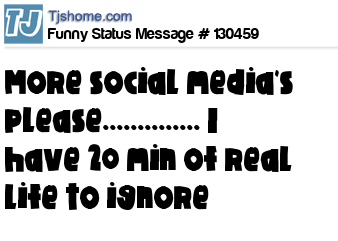 - # 70715 so everyone's so captivated in changing and updating their online status nowadays.. how about trying to update your "Actual" social status where friends can like you in real life for you, than for your imaginary egotistic thoughts about your life.