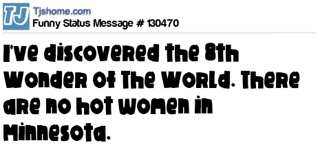 X I've discovered the 8th Wonder Of The World. There are no hot women in Minnesota.