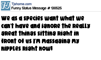 X says We as a species want what we can't have and ignore the really great things sitting right in front of us I'm massaging my nipples right now!