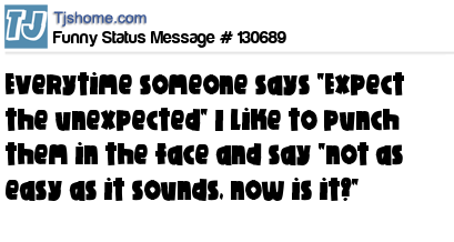 X says Everytime someone says "Expect the unexpected" I like to punch them in the face and say "not as easy as it sounds, now is it?"